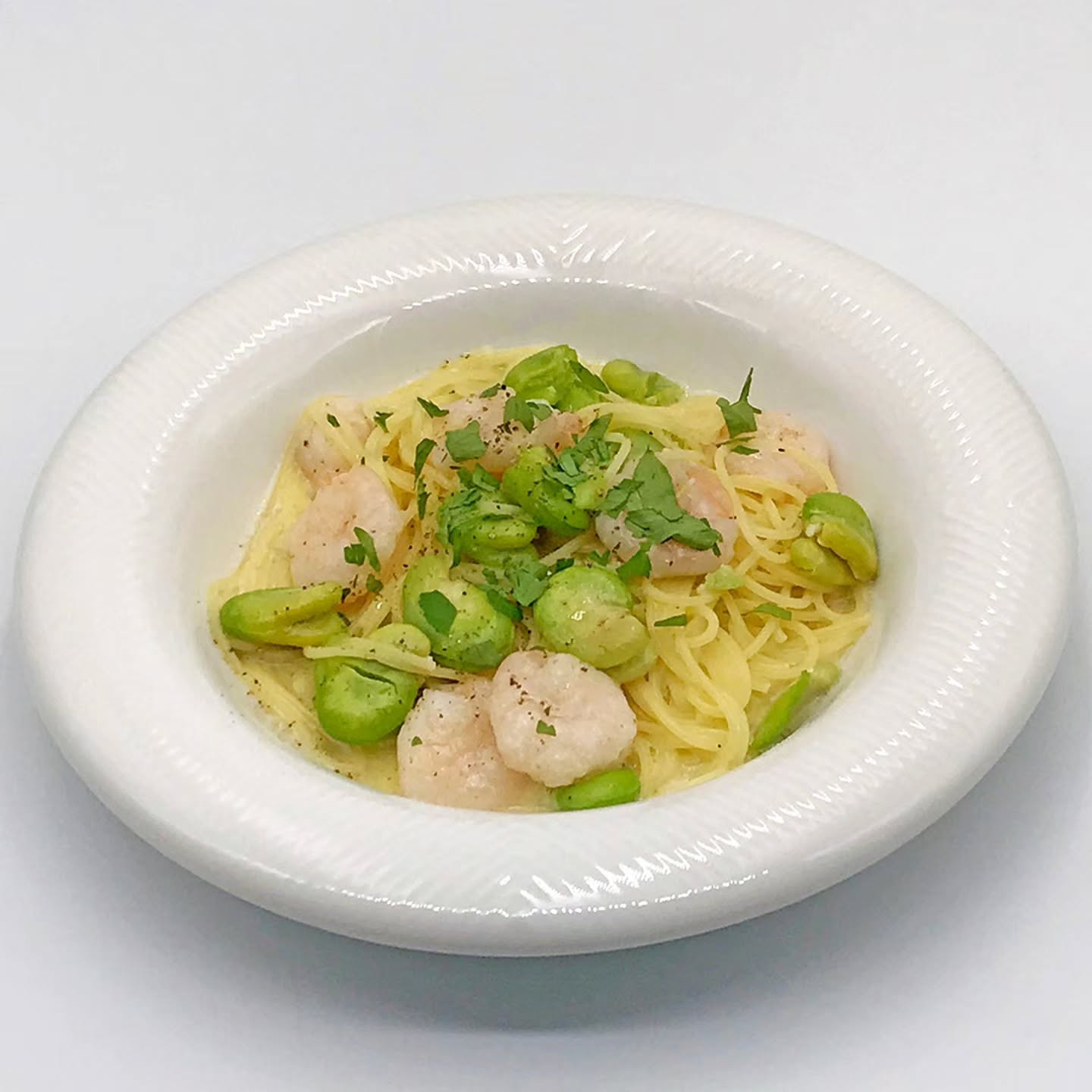 二枚目 小海老と空豆の軽いクリームパスタ