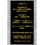うまい食パンです 3月29日(日) 食パンの焼き上がり時間お変...