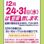 臨時営業日のお知らせ 12/24(水)/ 12/31(水)は営...